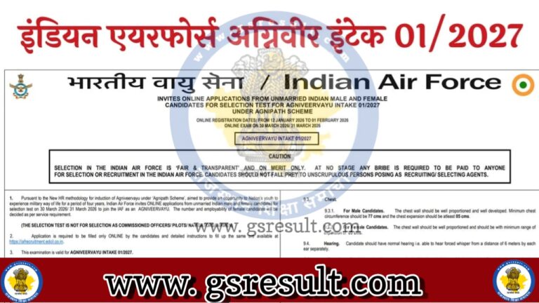 Air Force Agniveer Bharti 01/2027: इंडियन एयरफोर्स अग्निवीर इंटेक 01/2027 का नोटिफिकेशन जारी हो गया है भारतीय वायु सेवा अग्निवीर …