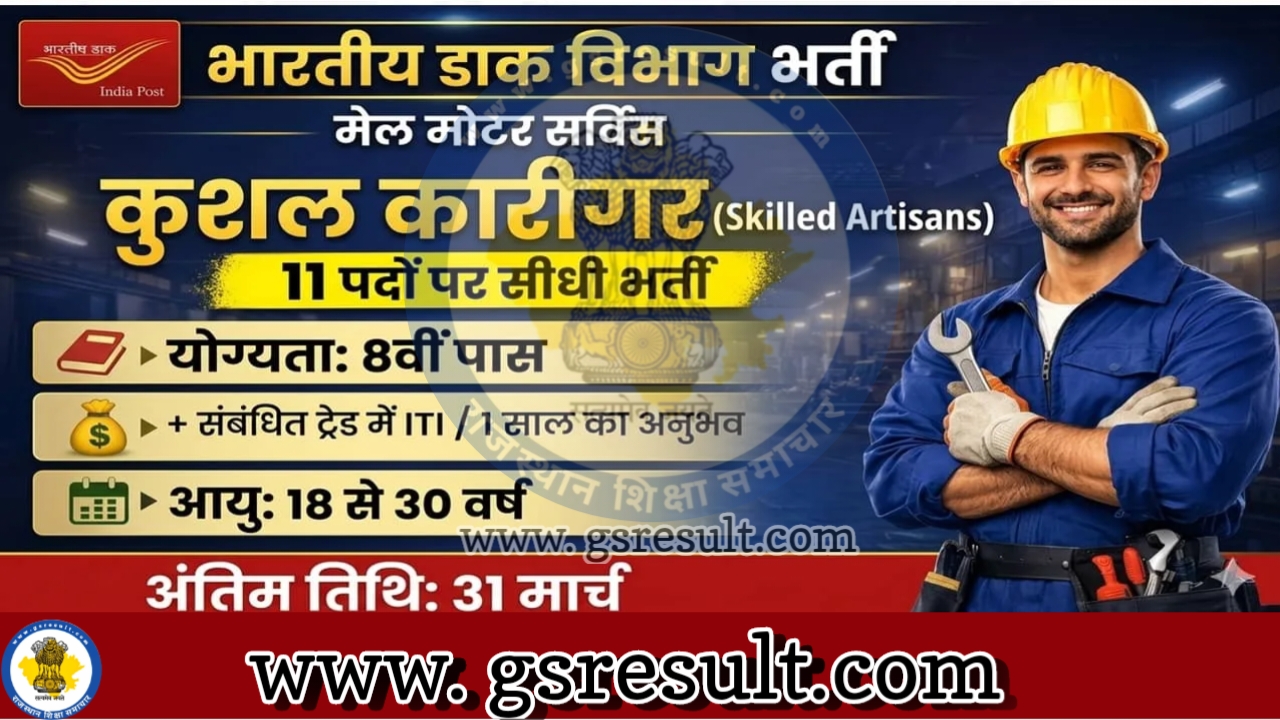 India Post Skilled Artisan Recruitment 2026: इंडिया पोस्ट में 8वीं पास कुशल कारीगर के पदों पर भर्ती का नोटिफिकेशन जारी