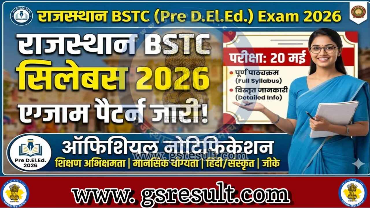 Rajasthan BSTC Syllabus 2026: राजस्थान बीएसटीसी प्री डीएलएड परीक्षा का सिलेबस और एग्जाम पैटर्न जारी कर दिया है राजस्थान बीएसटीसी परीक्षा का आयोजन 20 मई 2026 को किया जा रहा है इस परीक्षा के लिए लगभग 6 लाख अभ्यर्थियों ने आवेदन किया है अब विद्यार्थी राजस्थान बीएसटीसी सिलेबस और एग्जाम पैटर्न को ध्यान में रखते हुए अपनी तैयारी जारी रख सकते हैं और परीक्षा में अच्छे अंक प्राप्त कर सकते हैं।